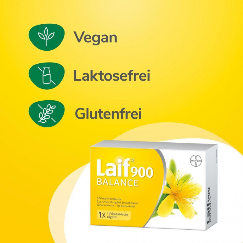 Laif® 900 Balance - растительный препарат на основе высокодозированного экстракта зверобоя для лечения легких депрессивных эпизодов, стресса, тревожности и нарушений сна. Обладает двойным действием: улучшает настроение и восстанавливает эмоциональное равновесие. Принимается 1 раз в день, не вызывает зависимости и дневной сонливости. Подходит для веганов, не содержит глютен и лактозу.