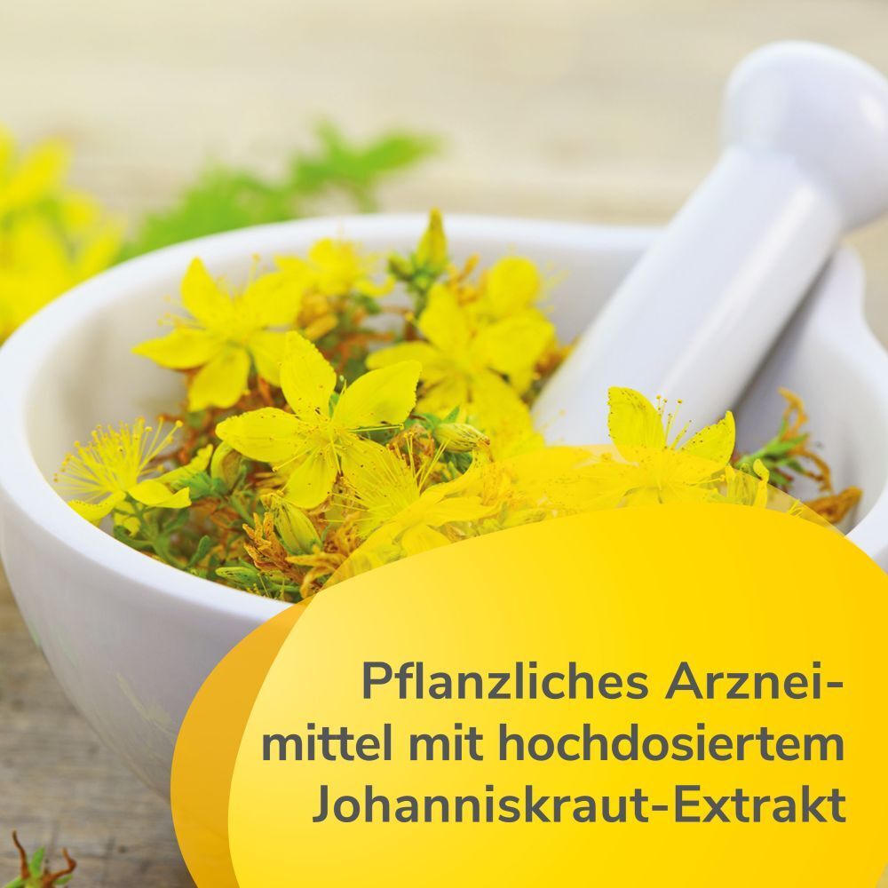Состав: 900 мг экстракта зверобоя сухого (3-6:1), вспомогательные вещества: стеариновая кислота, кроскармеллоза натрия, гипролоза, гипромеллоза 2910, диоксид кремния высокодисперсный, крахмал кукурузный предварительно желатинизированный, целлюлоза микрокристаллическая, магния стеарат растительный, триглицериды среднецепочечные, рибофлавин, макрогол 4000, диоксид титана, тальк