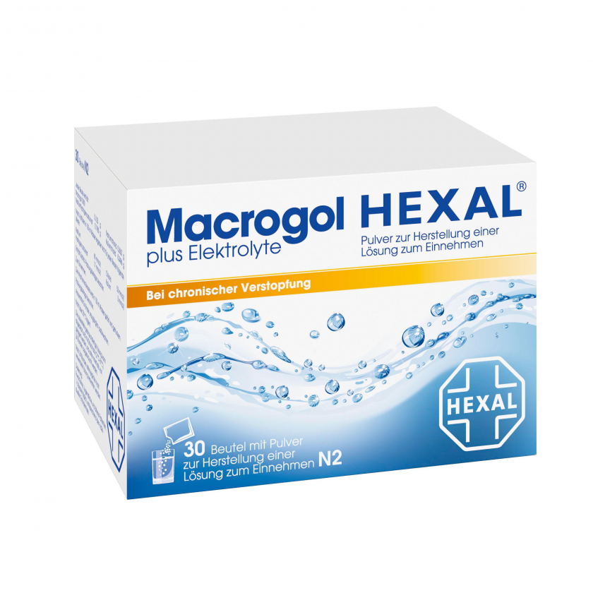 Macrogol HEXAL® plus Elektrolyte - лекарственный препарат для лечения хронических запоров у взрослых и подростков от 12 лет. Содержит макрогол и электролиты, действует мягко, стимулируя естественную перистальтику кишечника. Имеет приятный апельсиново-лимонно-лаймовый вкус. Применяется при растворении в воде 1-3 раза в день.