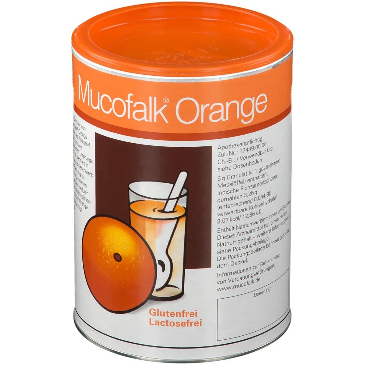 Mucofalk Orange - растительное слабительное средство на основе индийских семян подорожника для мягкого и естественного регулирования пищеварения. Применяется при хронических запорах, синдроме раздраженного кишечника, диарее, геморрое и анальных трещинах. Гранулы растворяются в жидкости перед употреблением.