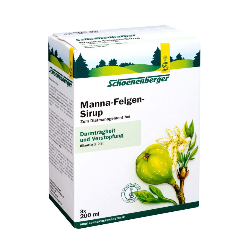 Натуральный сироп Schoenenberger Manna-Feigen для диетического лечения запоров и кишечной вялости. Содержит экстракт инжира и манну, действует мягко и естественно. Подходит для взрослых, детей и беременных. Без алкоголя и консервантов, веганский продукт. Объем 200 мл.