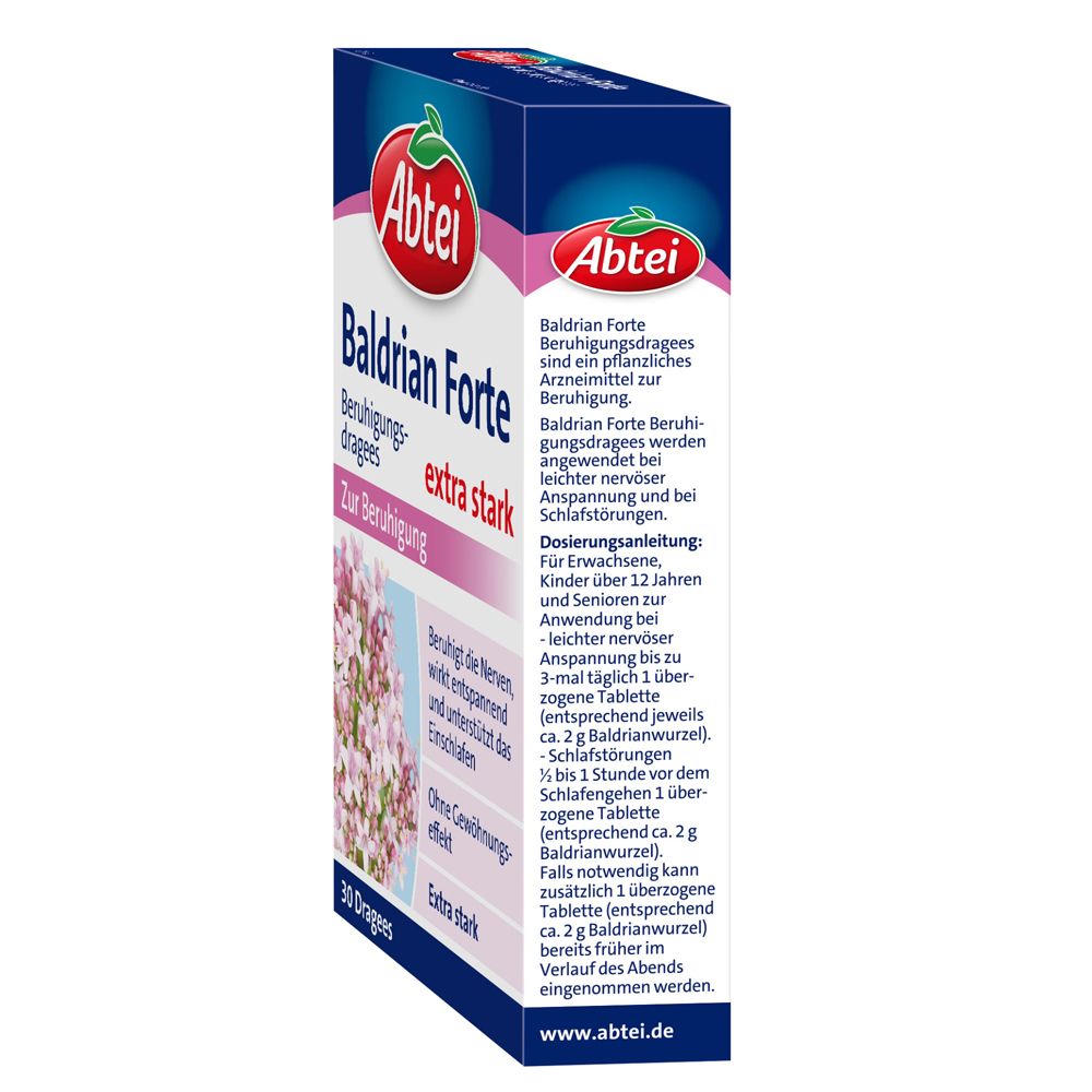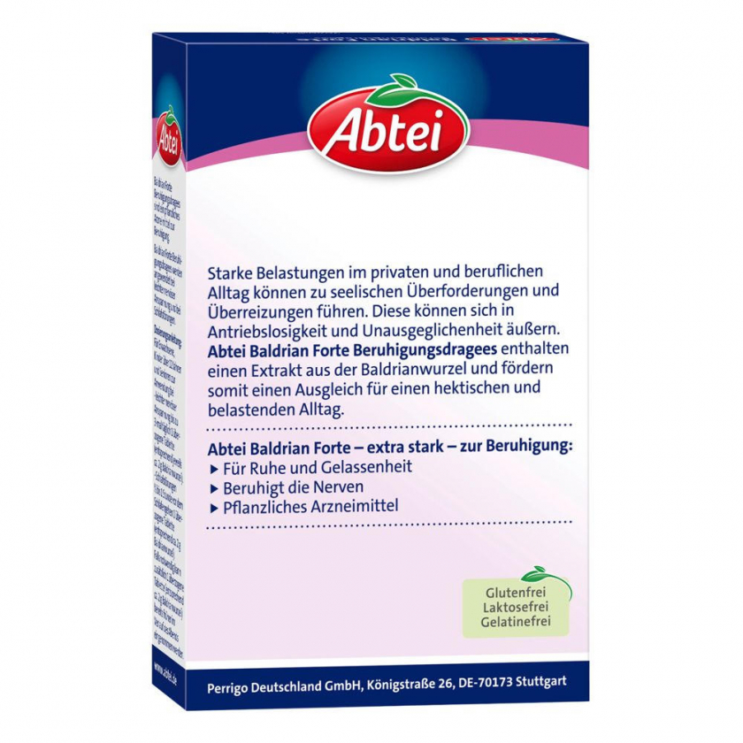 Растительное успокоительное средство Abtei Baldrian Forte на основе экстракта корня валерианы для снятия нервного напряжения, лечения беспокойства и нарушений сна. Не вызывает привыкания, подходит для взрослых и детей старше 12 лет.