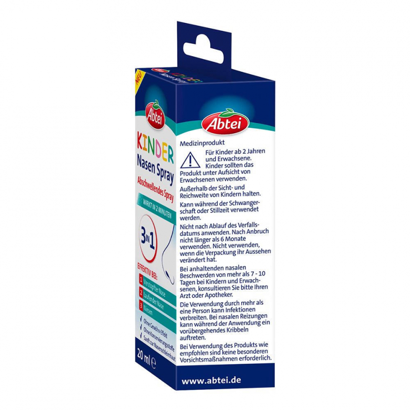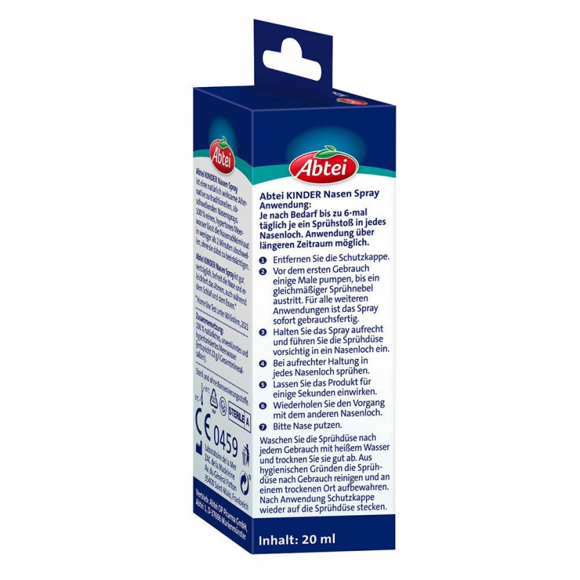 Abtei Kinder Nasen Spray - натуральное назальное средство на основе морской воды для детей от 2 лет и взрослых. Эффективно снимает заложенность носа, облегчает дыхание, не содержит консервантов и не вызывает привыкания. Безопасно при беременности и лактации.