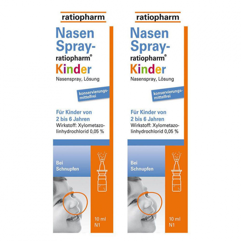 Назальный спрей ratiopharm для детей 2-6 лет с ксилометазолином для снятия отека слизистой носа при насморке, аллергическом рините и синусите. Сосудосуживающее средство для краткосрочного применения (до 7 дней)