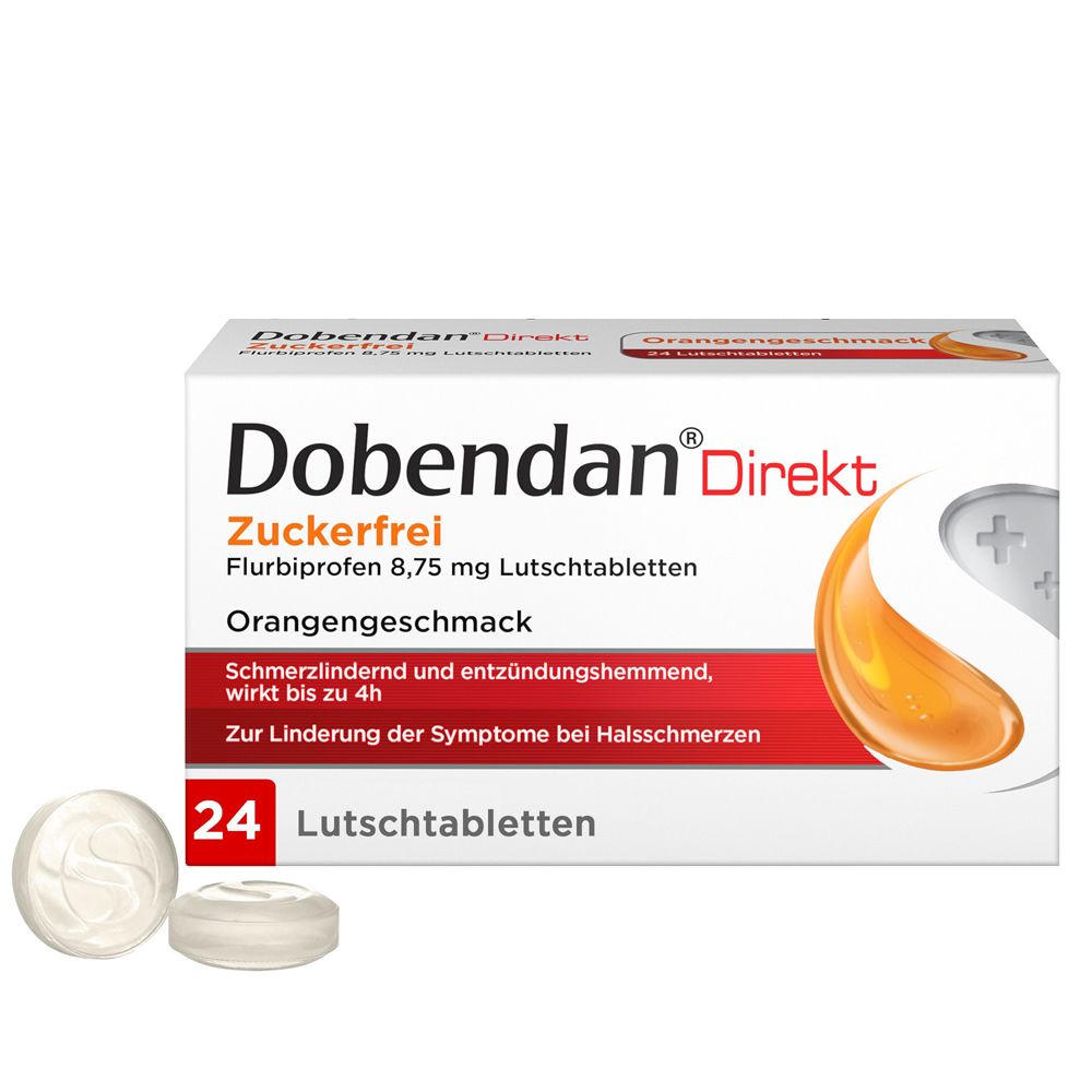Dobendan Direkt - безсахарные леденцы для горла с флурбипрофеном для облегчения боли и борьбы с воспалением при сильной боли в горле и затруднениях при глотании. Подходят для взрослых и детей от 12 лет. Действие начинается через 20 минут и длится до 4 часов