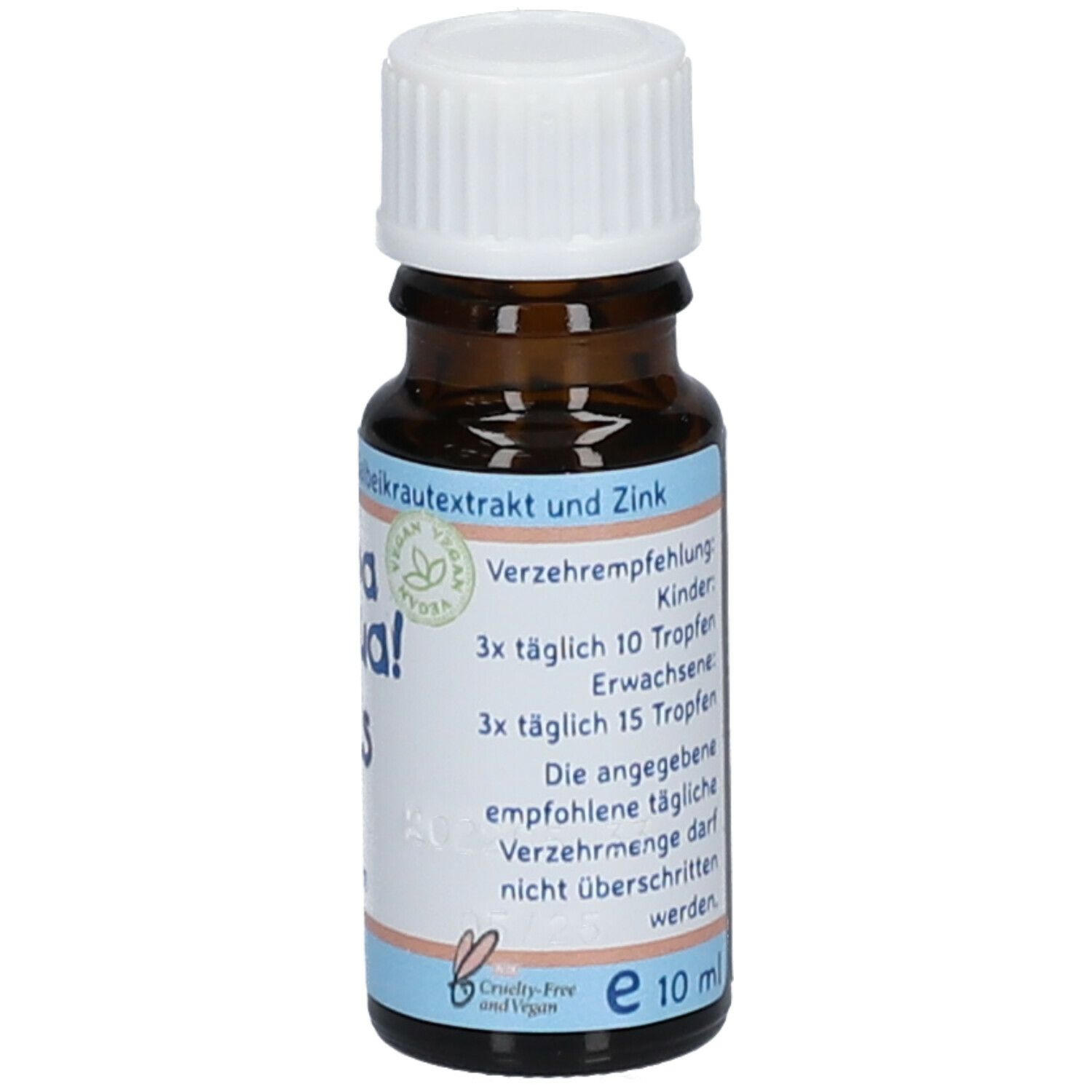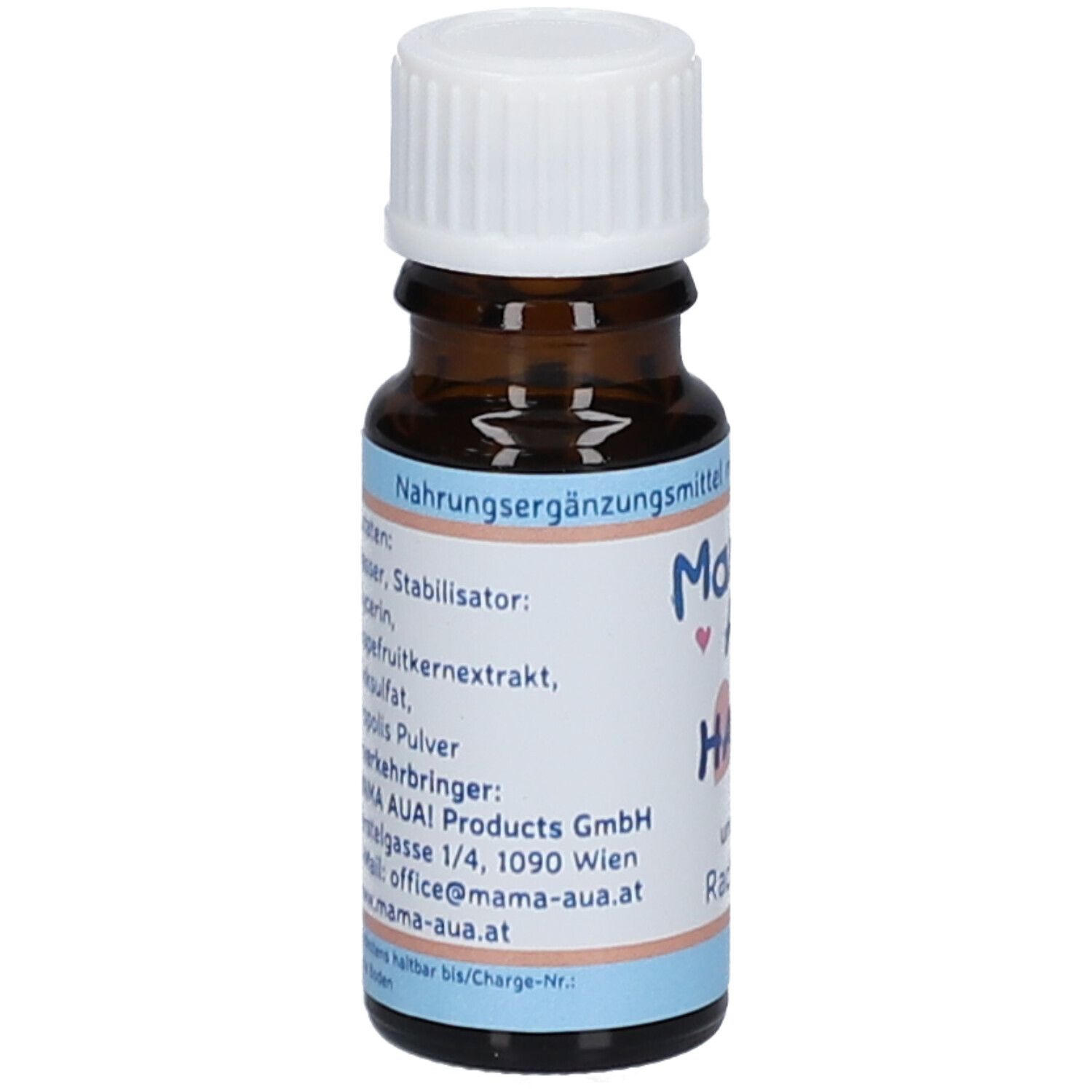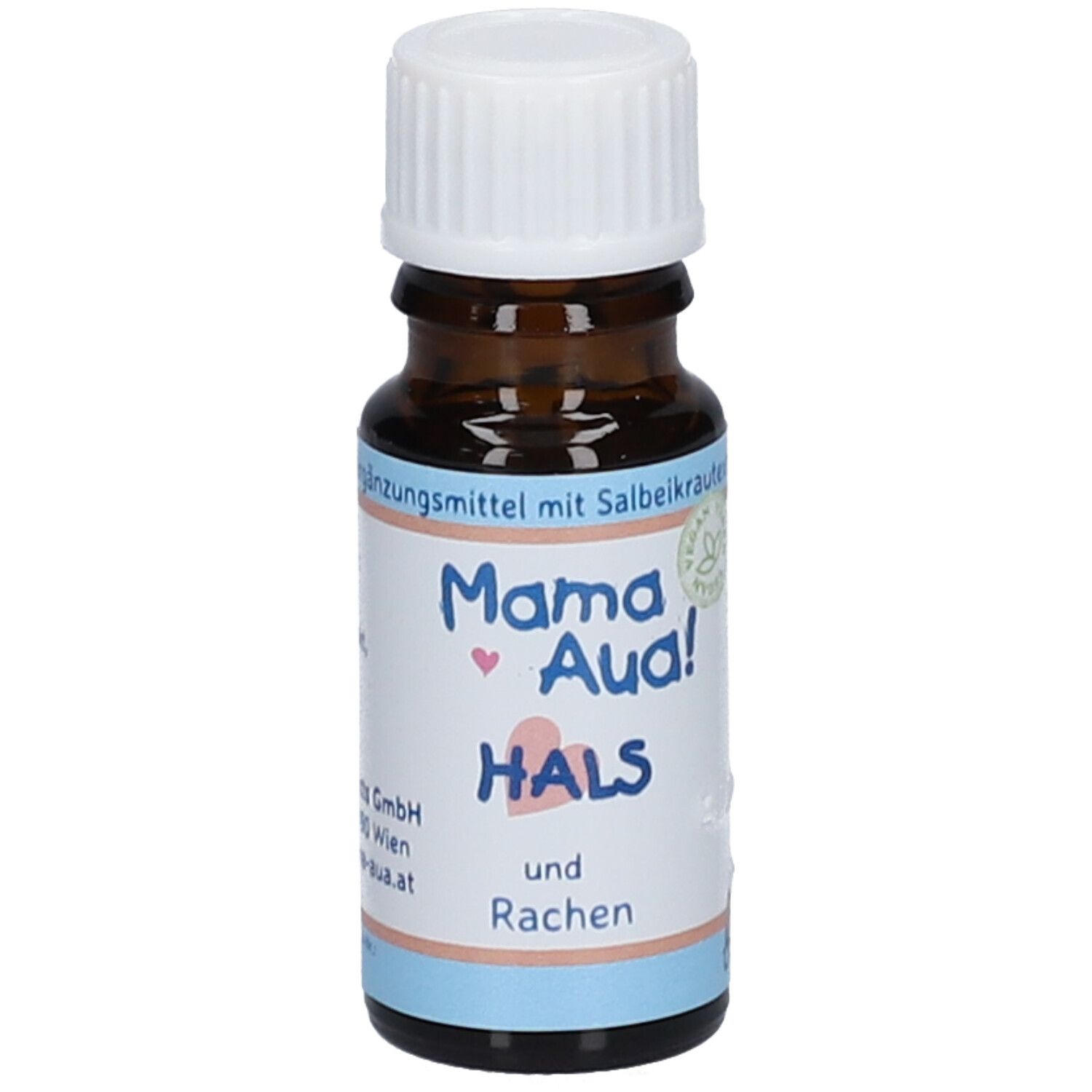 Натуральная биологически активная добавка Mama Aua! Hals для поддержания здоровья горла и ротовой полости. Содержит экстракты шалфея, мирры, прополиса, грейпфрутовых косточек и цинк. Без алкоголя, сахара, глютена, лактозы и искусственных консервантов. Подходит для взрослых и детей.