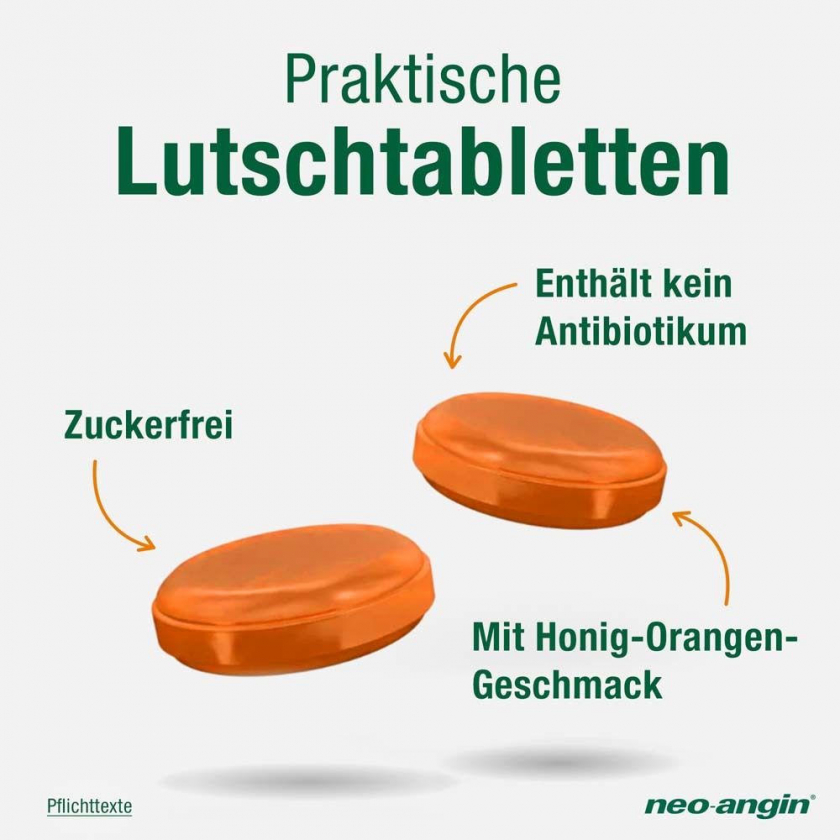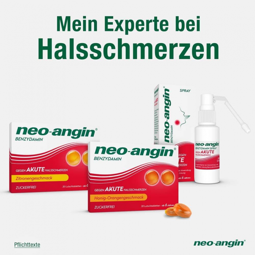 neo-angin Benzydamin gegen akute Halsschmerzen - Honig-Orangengeschmack - zuckerfrei