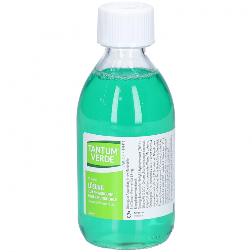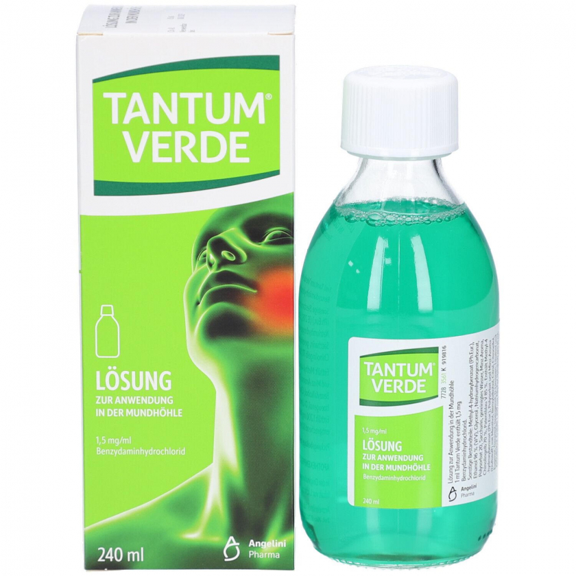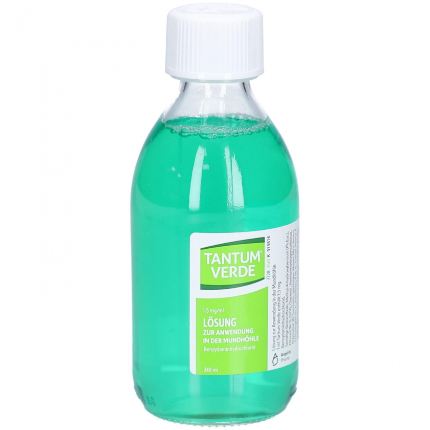 TANTUM VERDE® раствор для полоскания - лекарственное средство для быстрого симптоматического лечения болей и раздражений в полости рта и горла. Содержит бензидамина гидрохлорид с противовоспалительным и обезболивающим действием. Применяется при ангине, воспалениях десен, стоматите и других воспалительных процессах ротовой полости у взрослых и подростков от 12 лет.