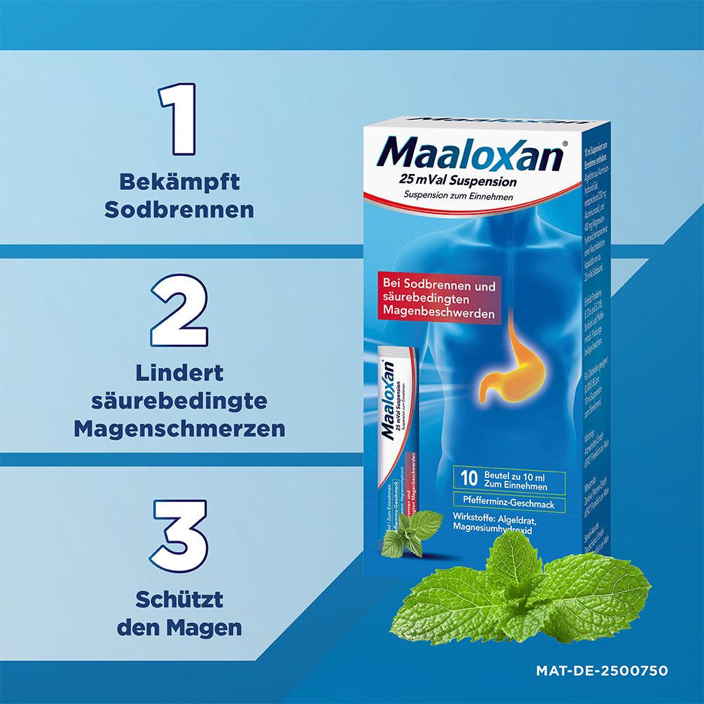 Maaloxan Suspension zum Einnehmen bei Sodbrennen und säurebedingten Magenbeschwerden - Praktische Portionier-Beutel
