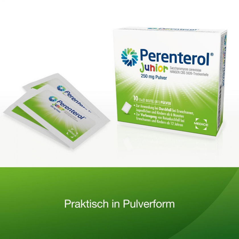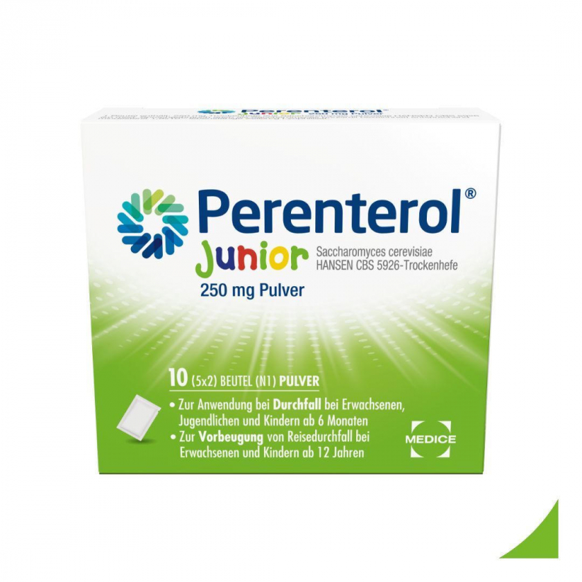 Perenterol Junior - лекарственный препарат в форме порошка для лечения острой диареи и профилактики диареи путешественников у детей и взрослых. Содержит натуральные лекарственные дрожжи Saccharomyces boulardii, которые связывают и выводят возбудителей диареи, поддерживают восстановление микрофлоры кишечника. Подходит для детей от 6 месяцев, имеет приятный вкус и удобную форму применения.