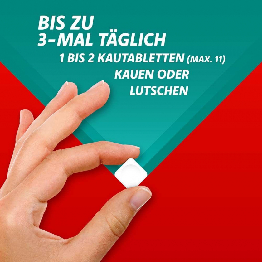 Жевать или рассасывать 1-2 таблетки при появлении симптомов, предпочтительно через час после еды или перед сном. Максимальная суточная доза - 11 таблеток