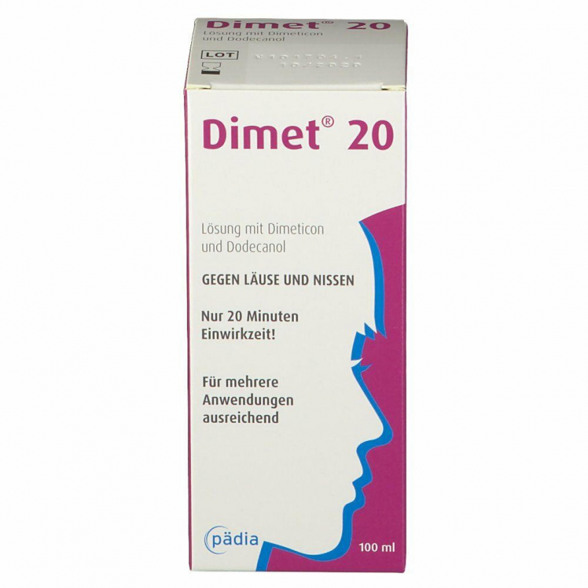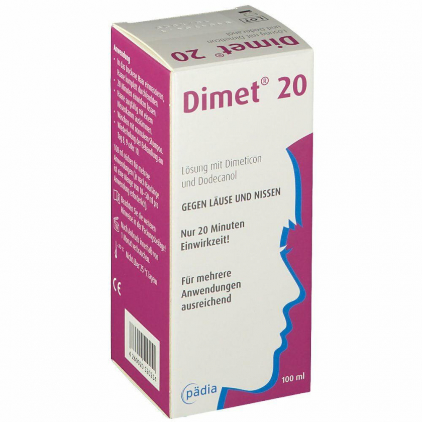 Dimet® 20 - физически действующий раствор для лечения головных вшей и гнид. Содержит диметикон и додеканол, обеспечивает физическое уничтожение паразитов без развития резистентности. Подходит для детей и взрослых, не содержит консервантов и красителей.
