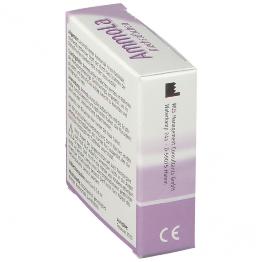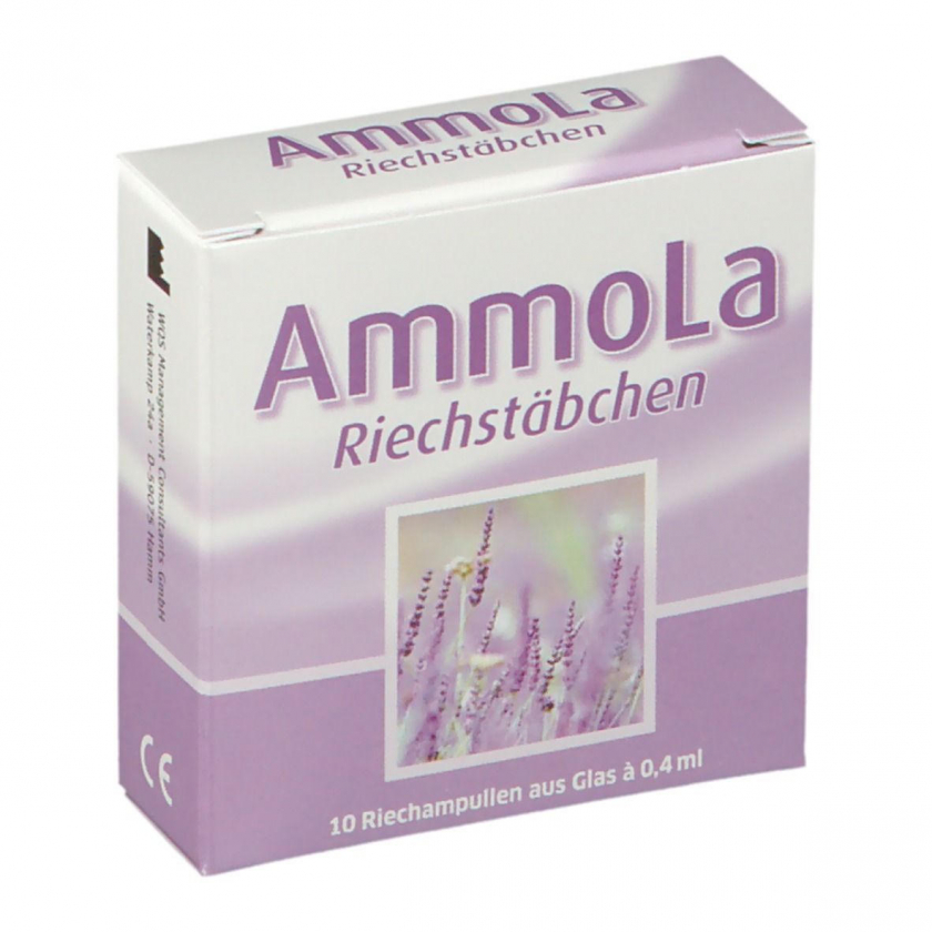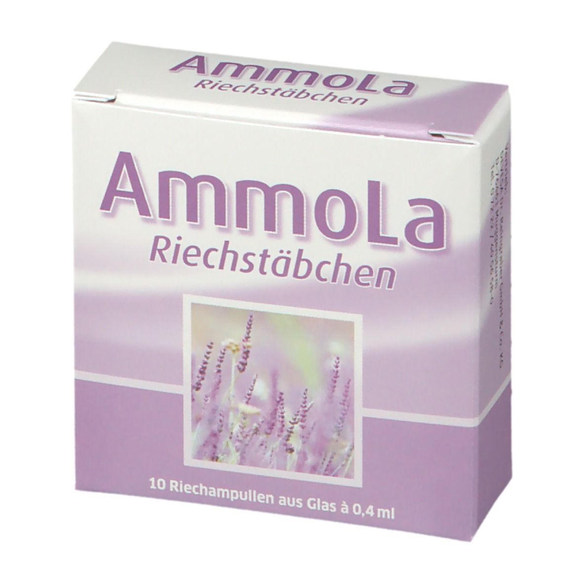 AmmoLa Riechstäbchen - медицинские нюхательные ампулы с лавандовым маслом для стимуляции дыхания. Содержат изопропанол, аммиак и лавандовое масло. Применяются наружно для улучшения дыхания при вдыхании. 10 стеклянных ампул по 0,4 мл каждая.