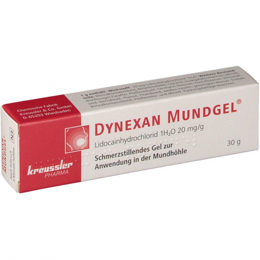 DYNEXAN® Mundgel - обезболивающий гель для полости рта на основе лидокаина. Применяется для временного симптоматического лечения боли при афтах, стоматите, гингивите, герпесе на губах, прорезывании зубов и других воспалительных процессах слизистой оболочки рта, десен и губ.