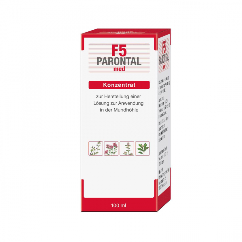 Parontal F5® med - лечебное средство для полости рта и горла с уникальной комбинацией растительных компонентов. Содержит эфирные масла, фенилсалицилат и фторид натрия. Обладает обезболивающим, противовоспалительным, антисептическим и дезодорирующим действием. Рекомендуется для ежедневного полоскания рта при зубном налете, неприятном запахе изо рта, раздражении слизистой и в качестве вспомогательного средства после стоматологических процедур.