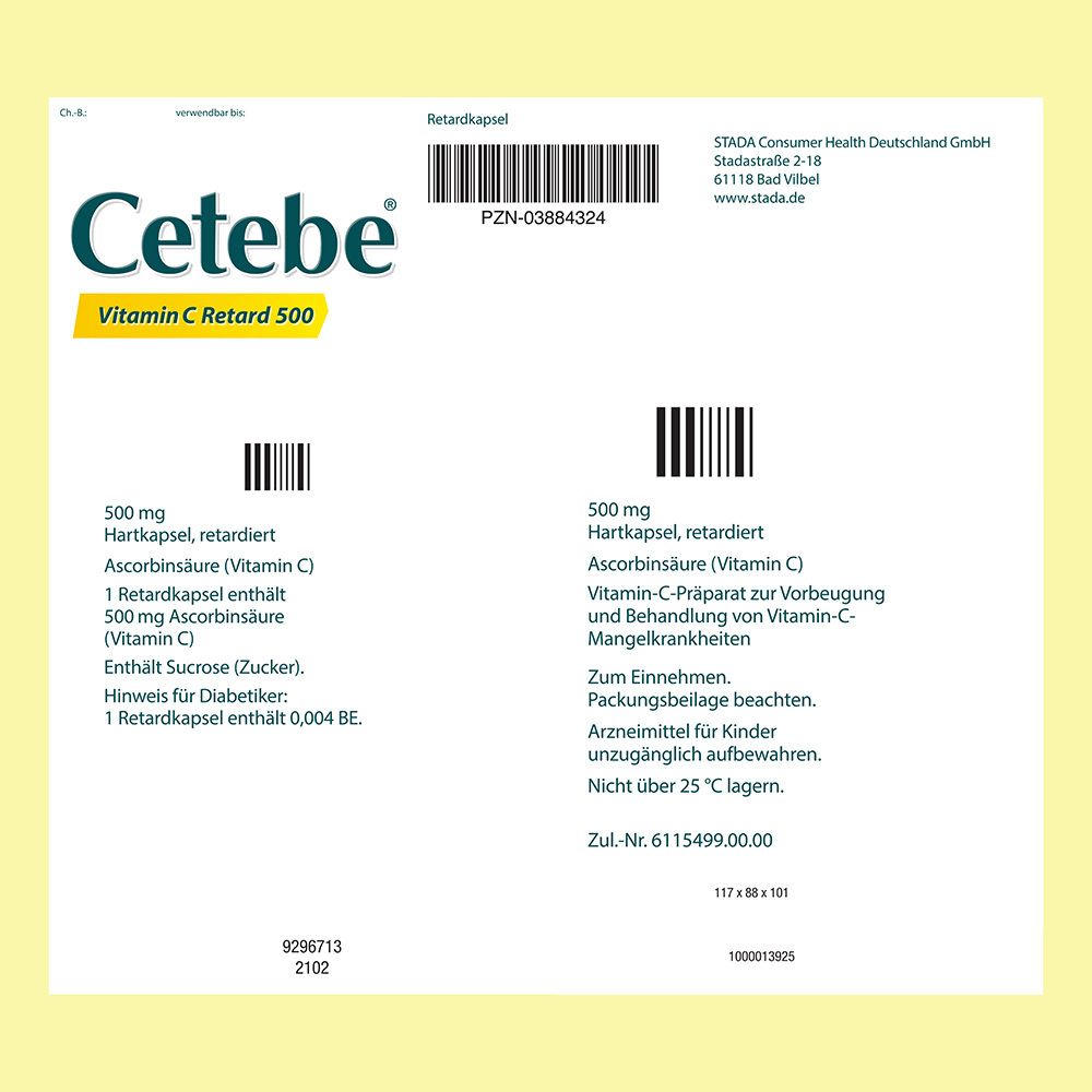 Cetebe® Vitamin C Retard 500 Arzneimittel, hochdosiertes Vitamin C mit Langzeitwirkung