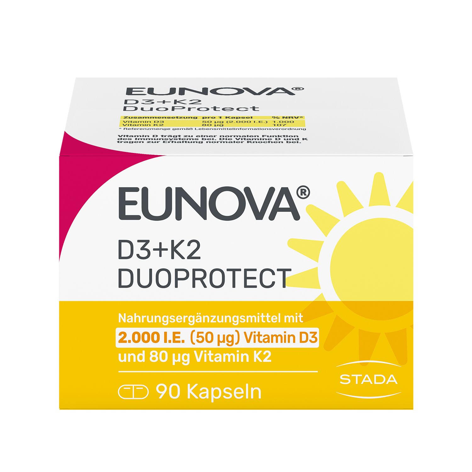 EUNOVA® D3 + K2 DuoProtect – 2.000 I.E. Nahrungsergänzungsmittel mit Vitamin D und K zur normalen Funktion des Immunsystems & Erhaltung normaler Knochen