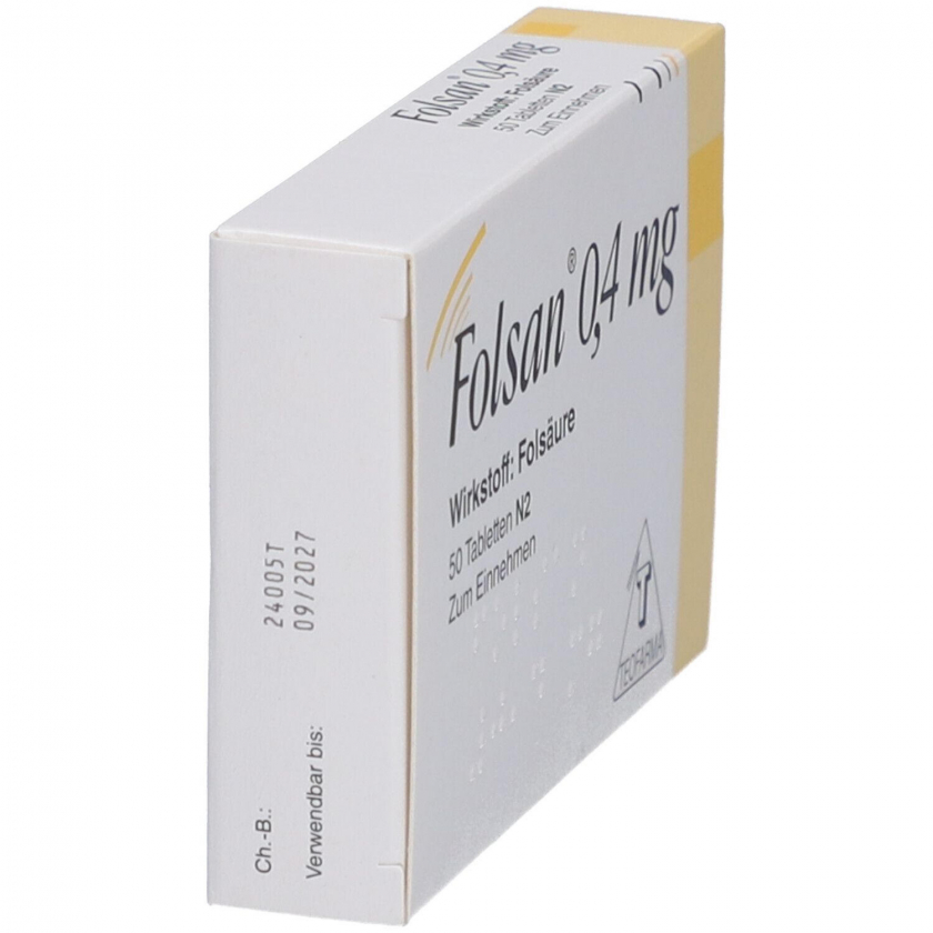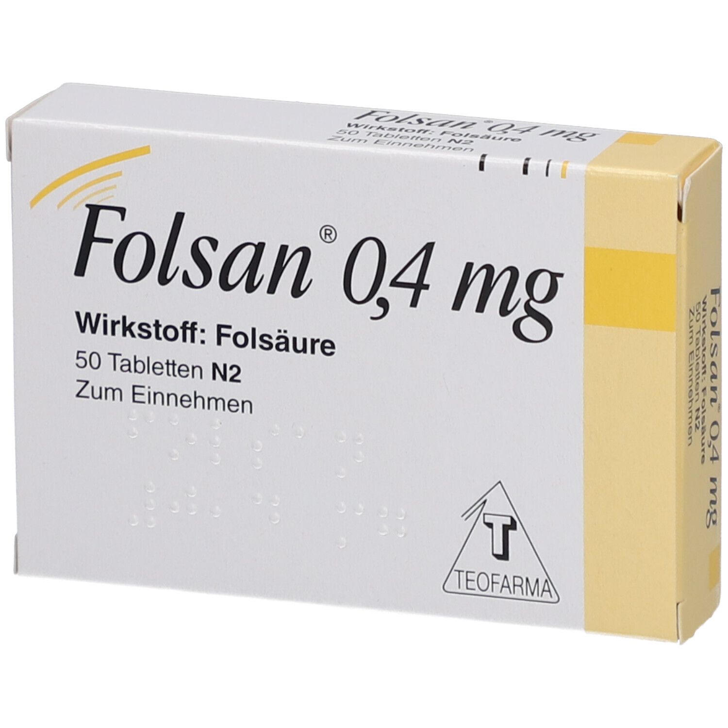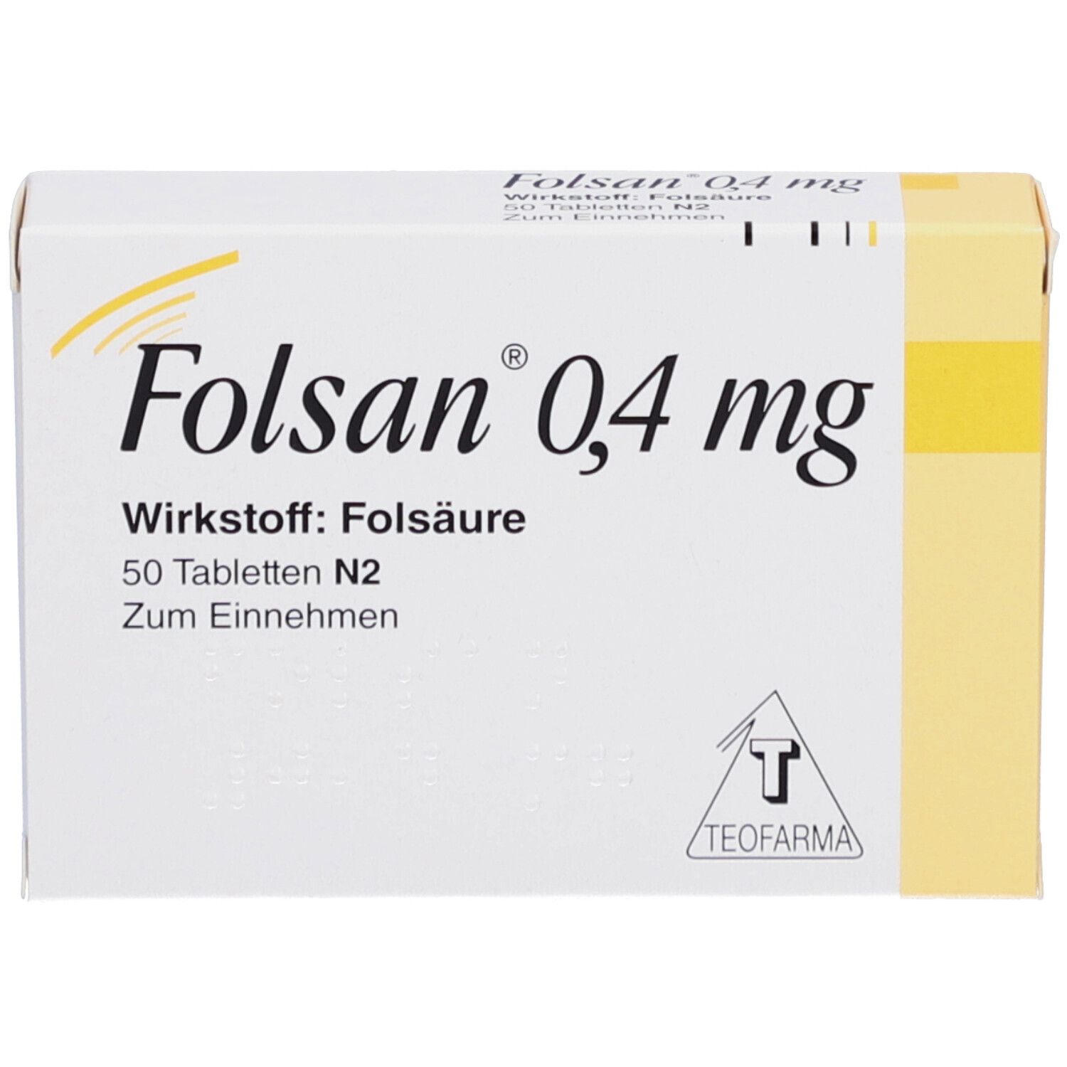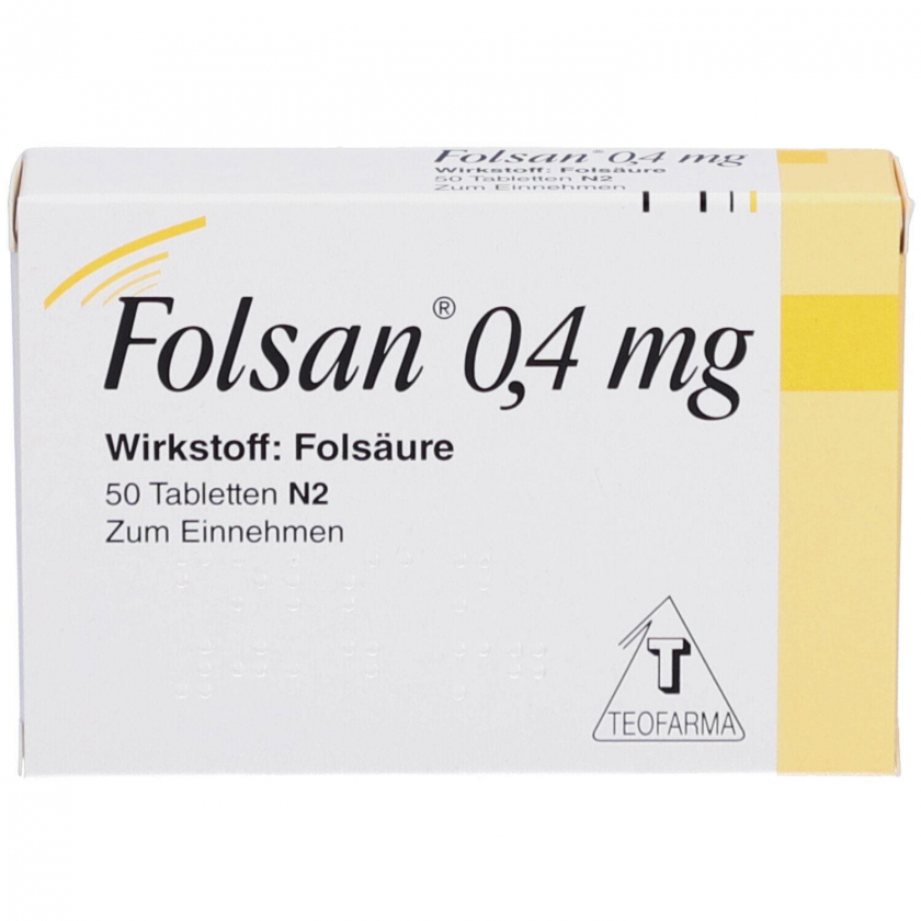 Folsan® 0,4 мг - лекарственный препарат для профилактики дефицита фолиевой кислоты и предотвращения дефектов нервной трубки у новорожденных. Содержит 0,4 мг фолиевой кислоты в каждой таблетке. Особенно рекомендуется женщинам до и во время беременности для снижения риска врожденных пороков развития у плода. Принимается по назначению врача.