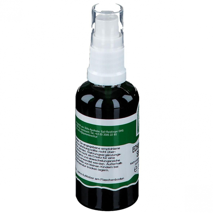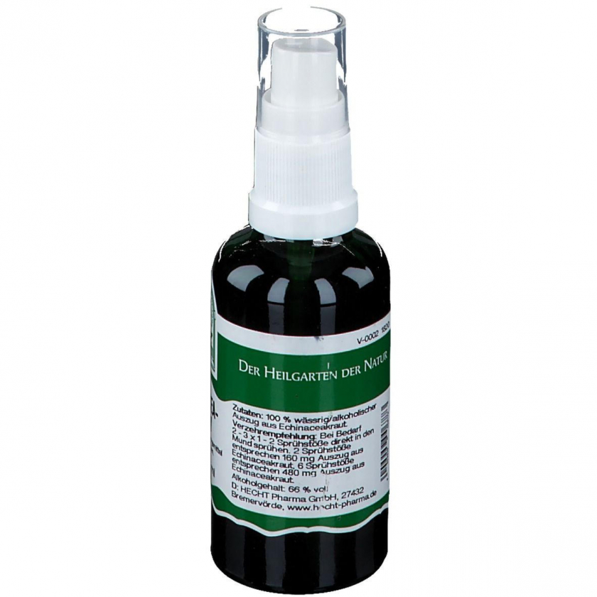 Hecht Echinacea Spray - это пищевая добавка на основе экстракта эхинацеи узколистной, предназначенная для укрепления иммунной системы. Содержит водно-спиртовой экстракт травы эхинацеи с содержанием алкоголя 66%. Применяется при необходимости по 1-2 распыления 2-3 раза в день непосредственно в рот. Производится в Австрии аптекой Stifts-Apotheke Gall-Reidlinger OHG.