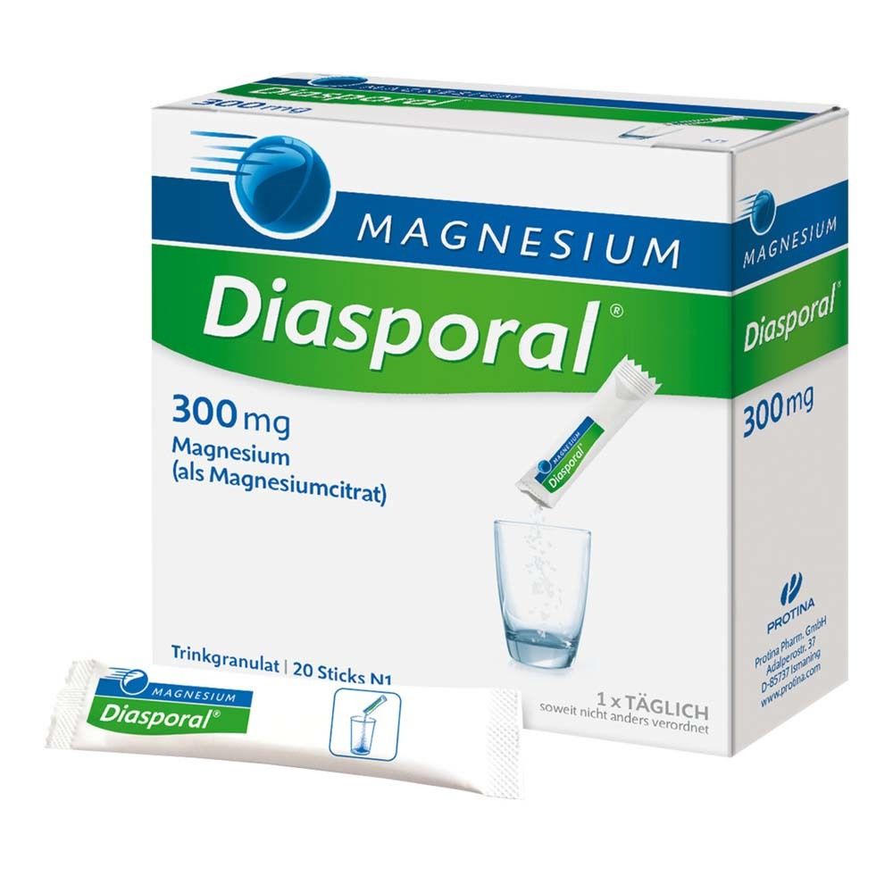 Magnesium Diasporal® 300 mg - лекарственный препарат магния в форме цитрата для лечения и профилактики дефицита магния. Содержит 300 мг магния в одном пакетике. Применяется при симптомах дефицита магния: мышечных судорогах, треморе, нервных расстройствах. Растворяется в воде, соке или чае.