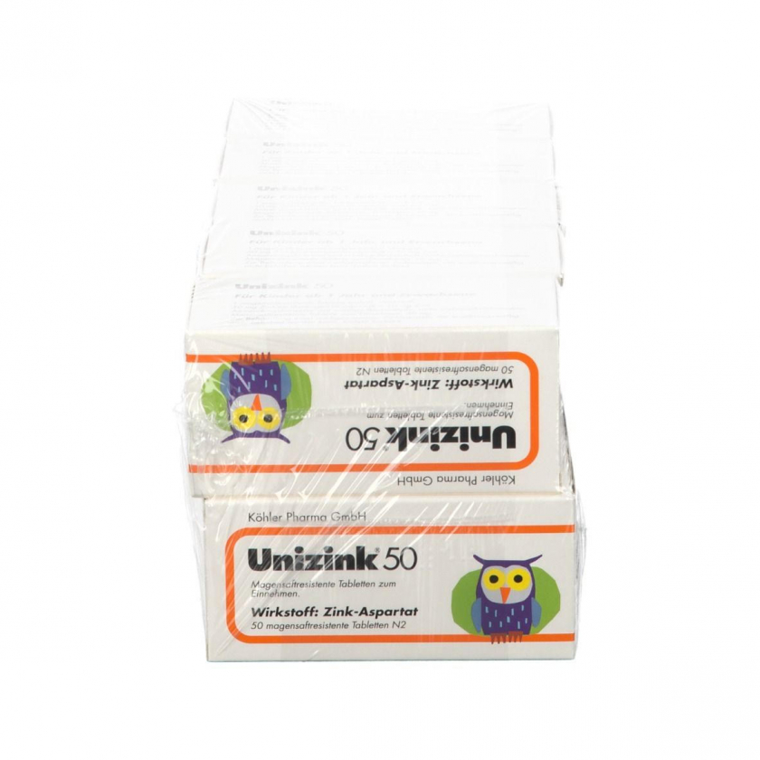 Unizink® 50 - немецкий препарат цинка в форме кишечнорастворимых таблеток для лечения дефицита цинка и укрепления иммунной системы. Содержит органический цинк-аспартатный комплекс с высокой биодоступностью. Подходит для взрослых и детей от 1 года. Без глютена, фруктозы, дрожжей, лактозы и диоксида титана.