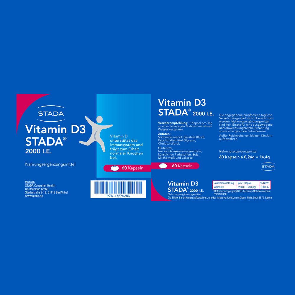Витамин D3 STADA® 2000 МЕ - пищевая добавка в форме мягких капсул для поддержания нормальной функции иммунной системы и здоровья костей. Высокая дозировка 2000 МЕ витамина D3, без глютена, лактозы и компонентов свиного происхождения. Рекомендуется при недостатке солнечного света и для определенных групп населения.