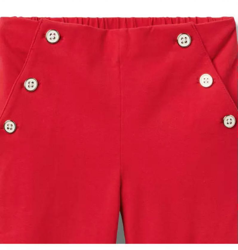 Style is on the button with our wide leg pant. Designed in soft stretch jersey with enamel button details.