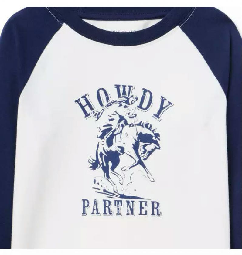 Saddle up in style with our Howdy tee. Designed in soft cotton jersey with a screenprinted cowboy graphic, raglan sleeves and a ribbed neck.