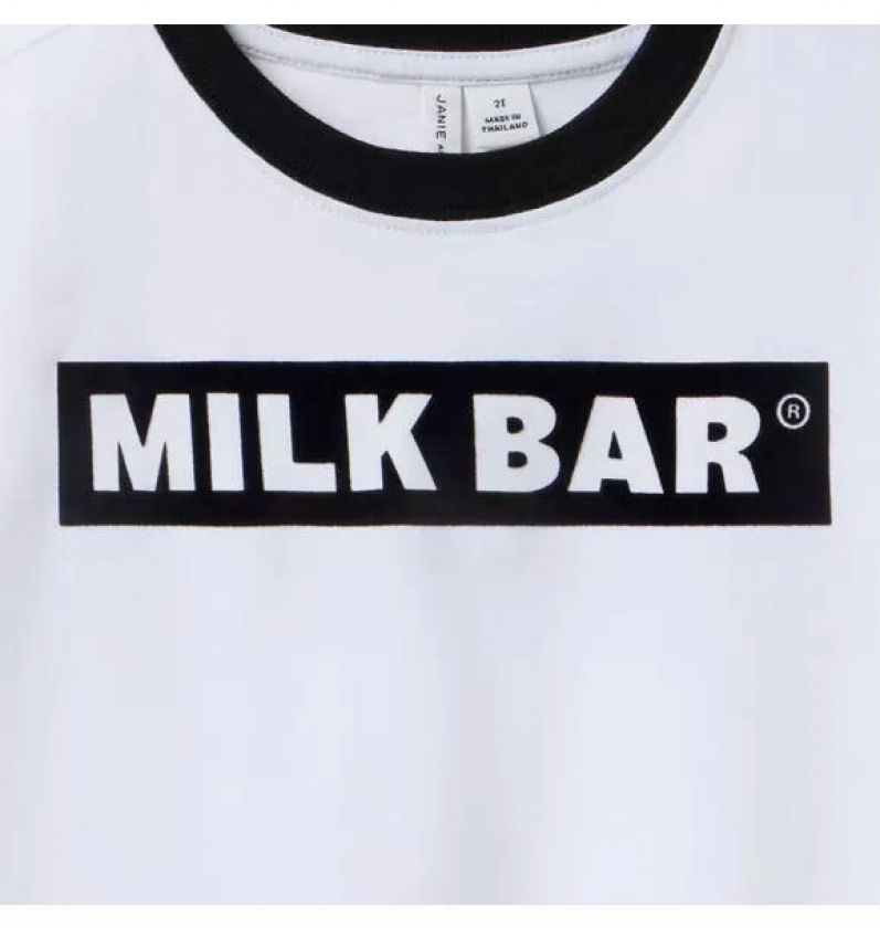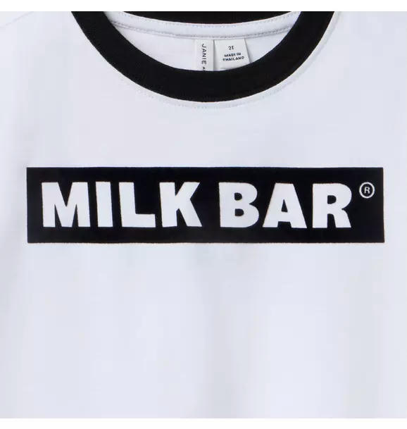 A top favorite from our exclusive collaboration with the original Milk Bar. Our soft jersey tee features a contrast ribbed neck and a textured Milk Bar graphic too.