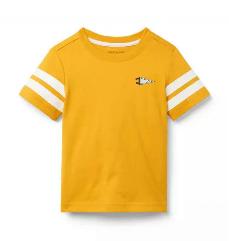 For a winning look, reach for our soft cotton jersey tee. Designed with athletic-inspired stripes and a screenprinted pennant flag icon at the chest.