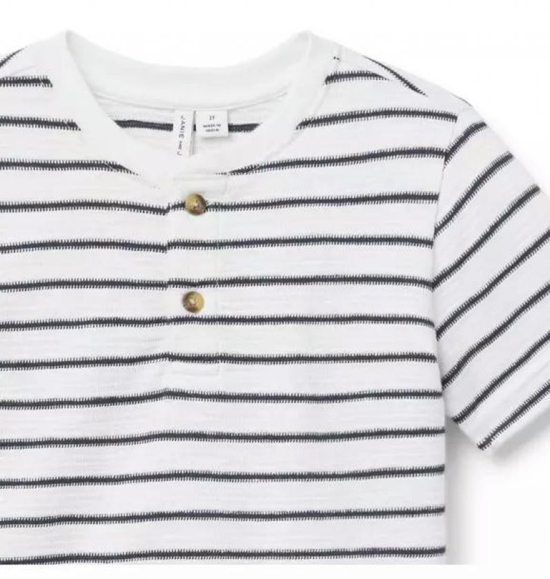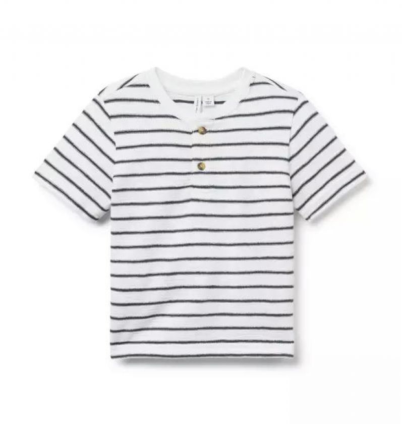 A henley tee we love in a trending textured knit. With allover stripes, a contrast collar and ribbed details too.