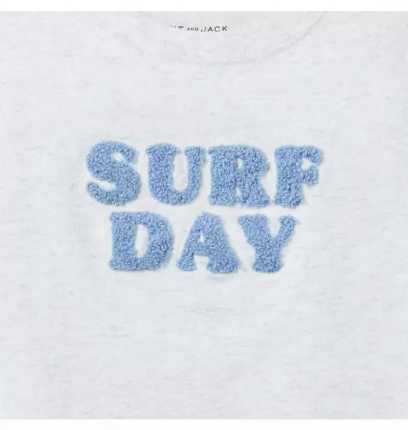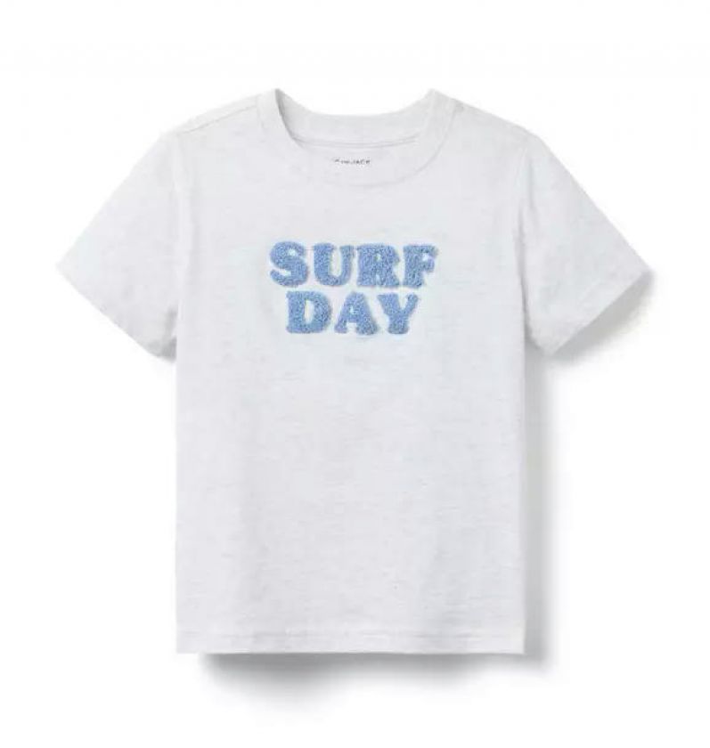 Sun's out, surf's up. Our tee in soft cotton jersey features a chenille Surf Day graphic and a ribbed neck.