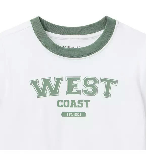 Coast through the season in our soft cotton jersey tee. Featuring a screenprinted West Coast graphic and a contrast ribbed neck.