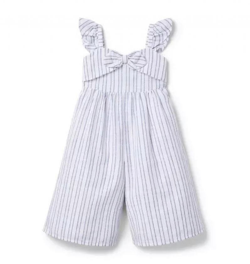 Jumpstart sunny days with this striped must-have. In a wide-leg silhouette with flutter sleeves, a bow sweetheart neckline and pockets too.