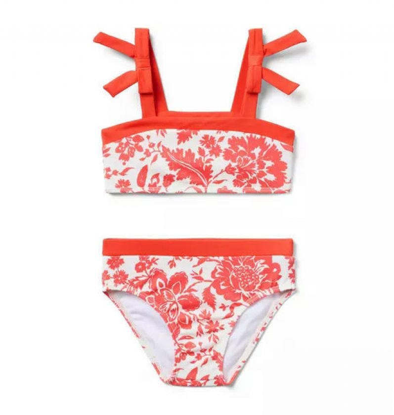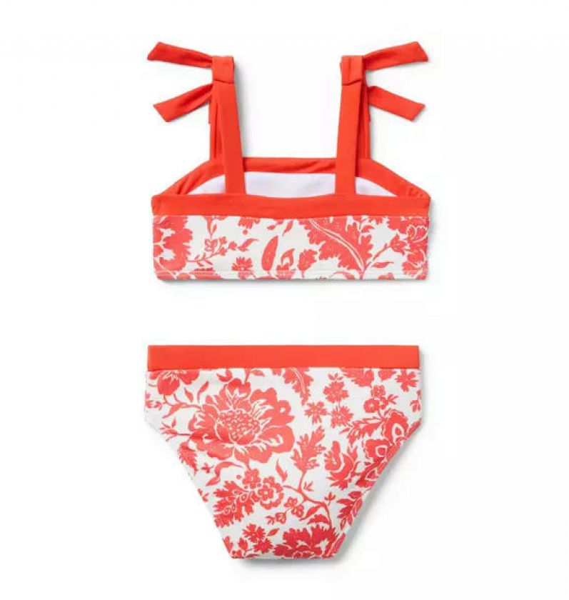 For the beach or the pool, a floral swimsuit is always in season. Designed with bows at the straps and UPF 50+ sun protection to keep them stylishly safe. Responsibly made with recycled polyester fabric.