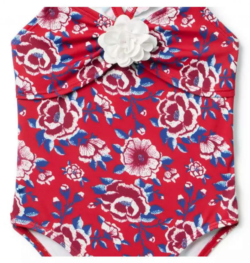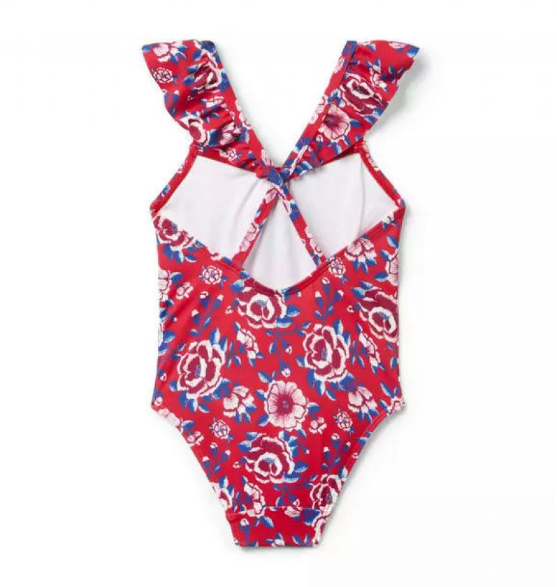 Sunny florals and a rosette detail make our swimsuit bloom. With ruffles, a sweetheart neckline and crossback straps. Plus, UPF 50+ protection to help keep them stylishly safe. Responsibly made with recycled fabric.