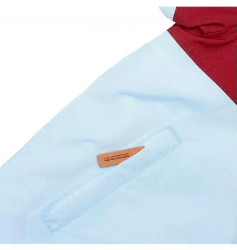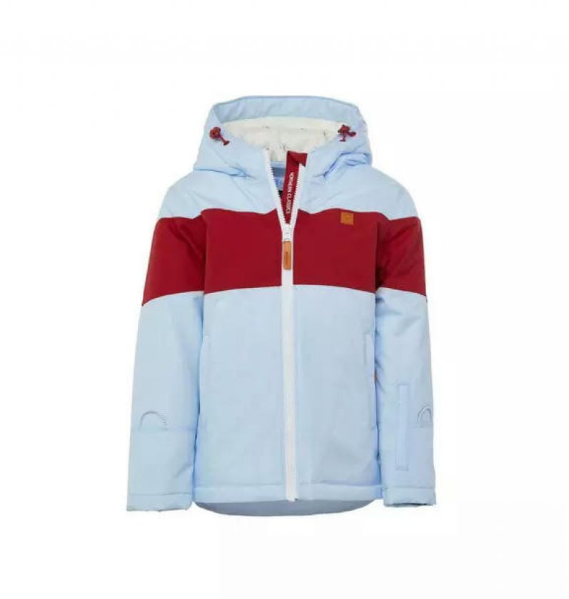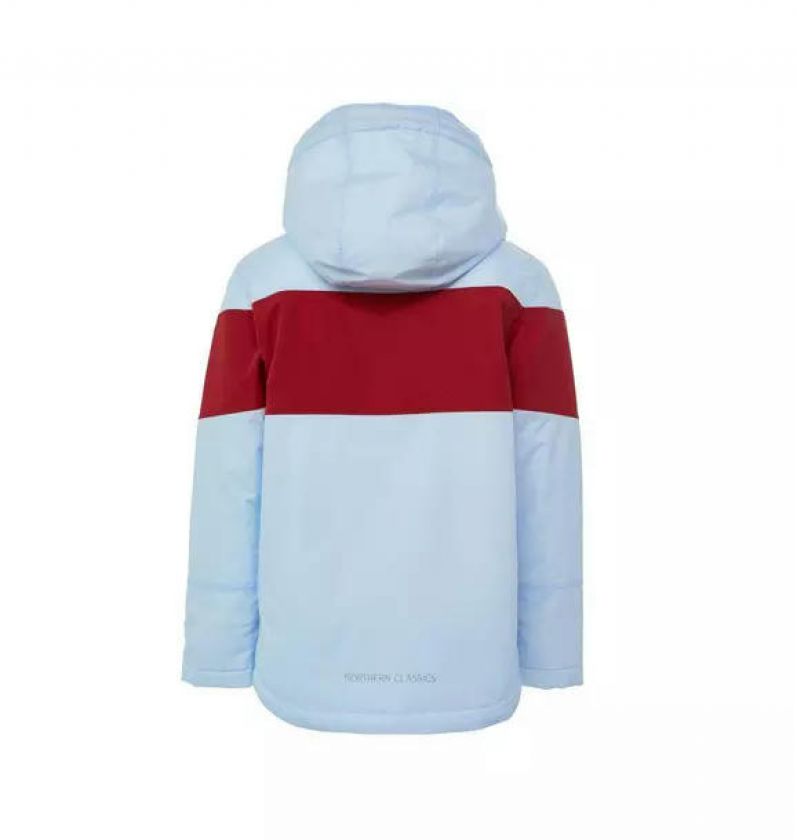 Cloud Blue Winter Coat with Red Rugby Stripe