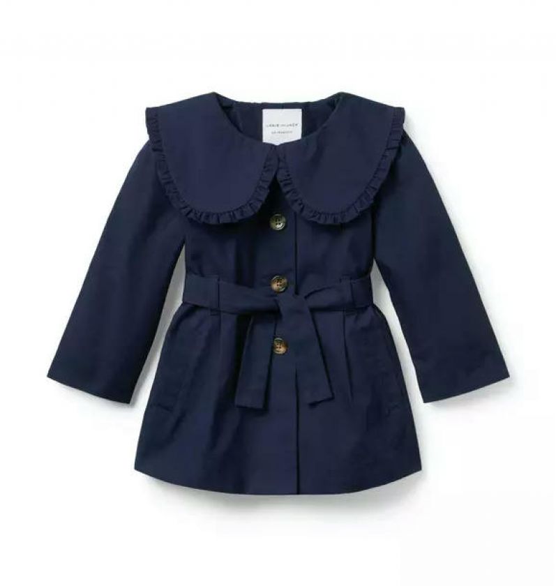 A fashion forward twist on a classic trench coat. Designed with an oversized ruffle trimmed collar and pockets for all the little things. Wear it everywhere, with everything.