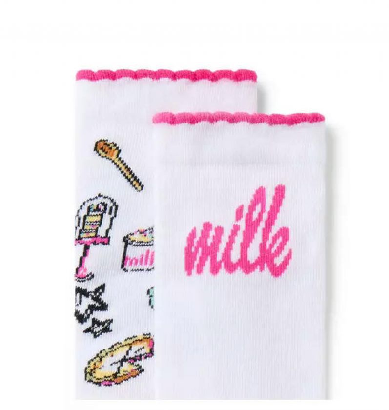 Treat their feet to our sock set inspired by NYC's iconic Milk Bar. Made in a soft and stretchy cotton-nylon blend with an exclusive print on one pair and an embroidered Milk Bar detail on the other.