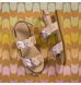 Designed for charm and comfort, these sandals feature heart-shaped accents crafted from premium leather in a mix of textures, creating a delightful, layered look. The soft leather insole naturally absorbs perspiration, ensuring fresh and breathable wear all day. A secure hook-and-loop closure at the back allows for a perfect fit, while the flexible sole ensures durability and ease of movement for little steps. Playful yet refined, they are the perfect choice for sunny days.