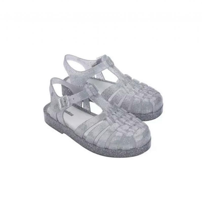 Possession Shiny Fisherman Jelly Sandal in Glitter Clear Silver