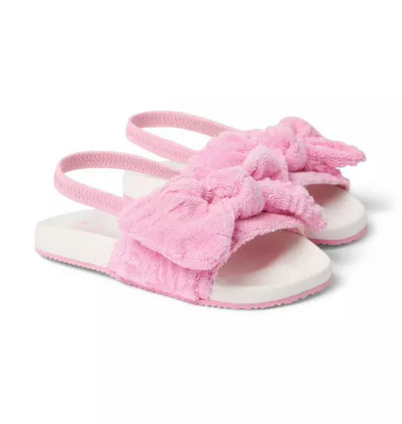 For lounging by the pool in style, or just because, slip into our soft terry palm print slide designed with a bow detail.