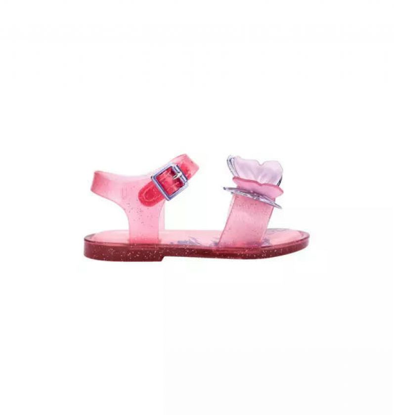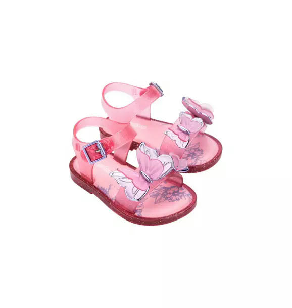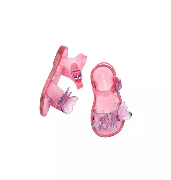 Give your little some wings to fly. Introducing the Mini Melissa Fly Sandal. This classic sandal is decorated with a layered butterfly appliqué as a reminder to your mini that she can fly as high as she wants.