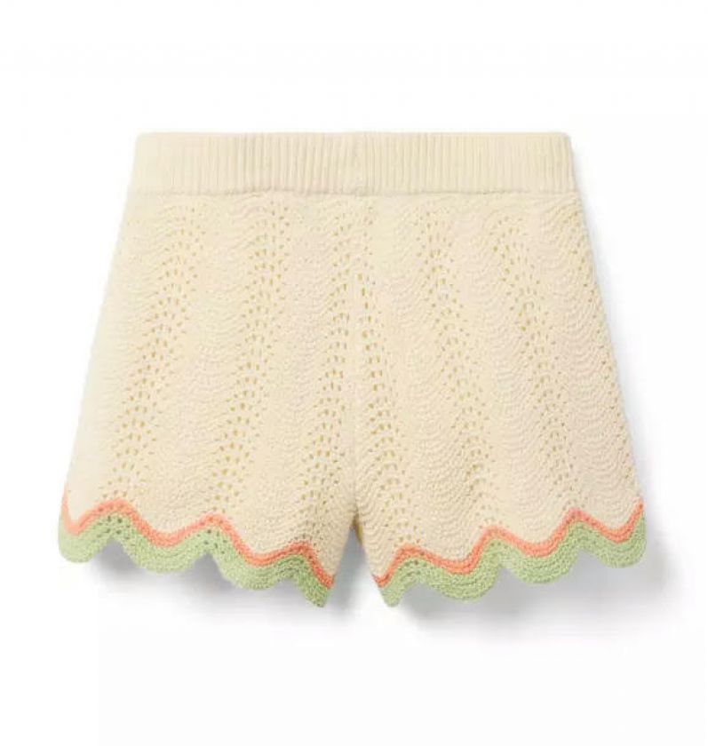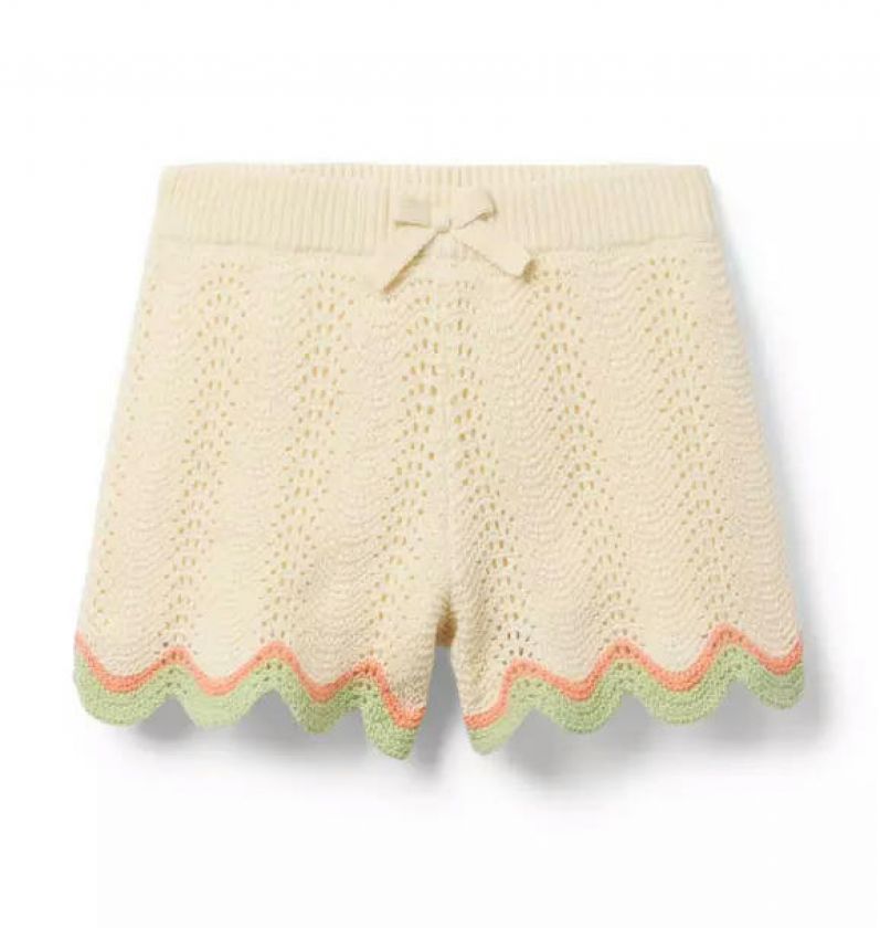 Our crochet short pairs perfectly with all their favorites. With a scalloped hem and a bow at the waist too.