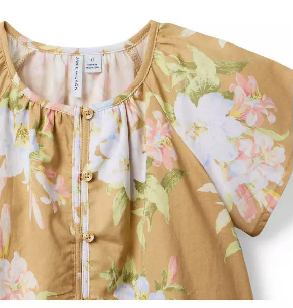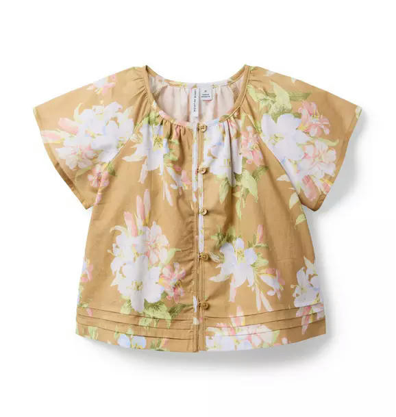 Floral Pintuck Button Top