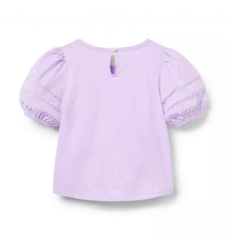 This soft jersey favorite rises to the top with its puff sleeves and lace trim. Designed in the perfect A-line silhouette.