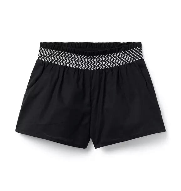 A goes-with-everything short in pure cotton. Featuring smocked contrast stitching and shirred details too.