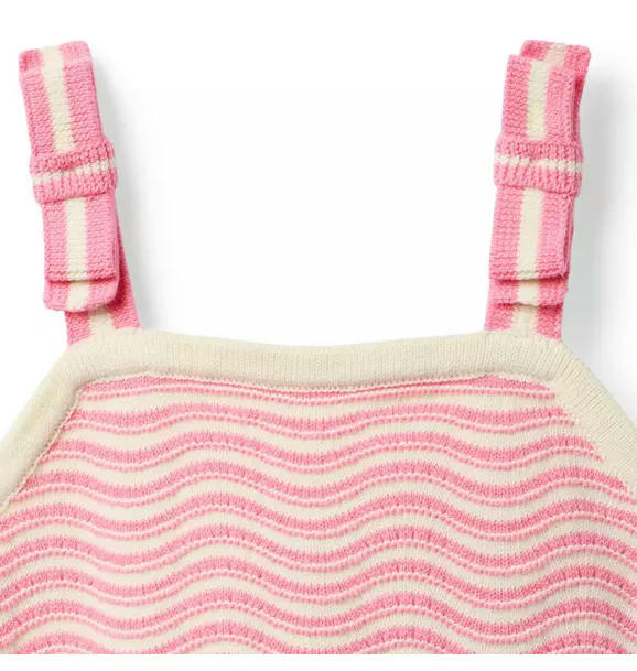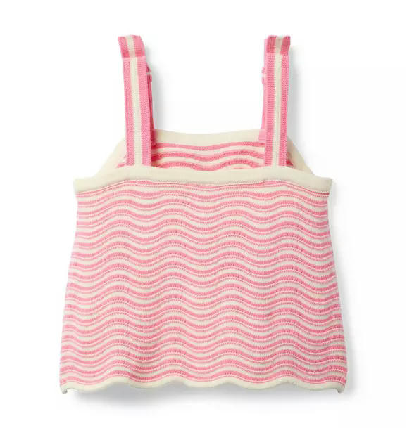 A wave of style starts with this soft knit top. Featuring a scalloped hem and bow straps too.