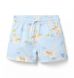 Put style on the map in our getaway-ready swim trunk. Designed in an animal map print with UPF 50+ sun protection, a touch-close back pocket and embroidered eyelets to let water drain out. Responsibly made with recycled fabric.