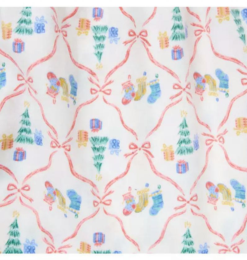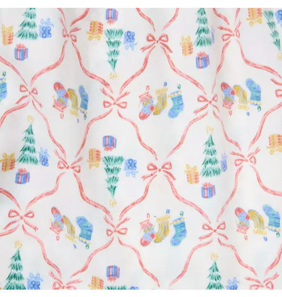 A classic made for holiday memories. Our feel-good, soft PJ in a vintaged-inspired stocking print features a ruffle-trimmed collar and smocked details.